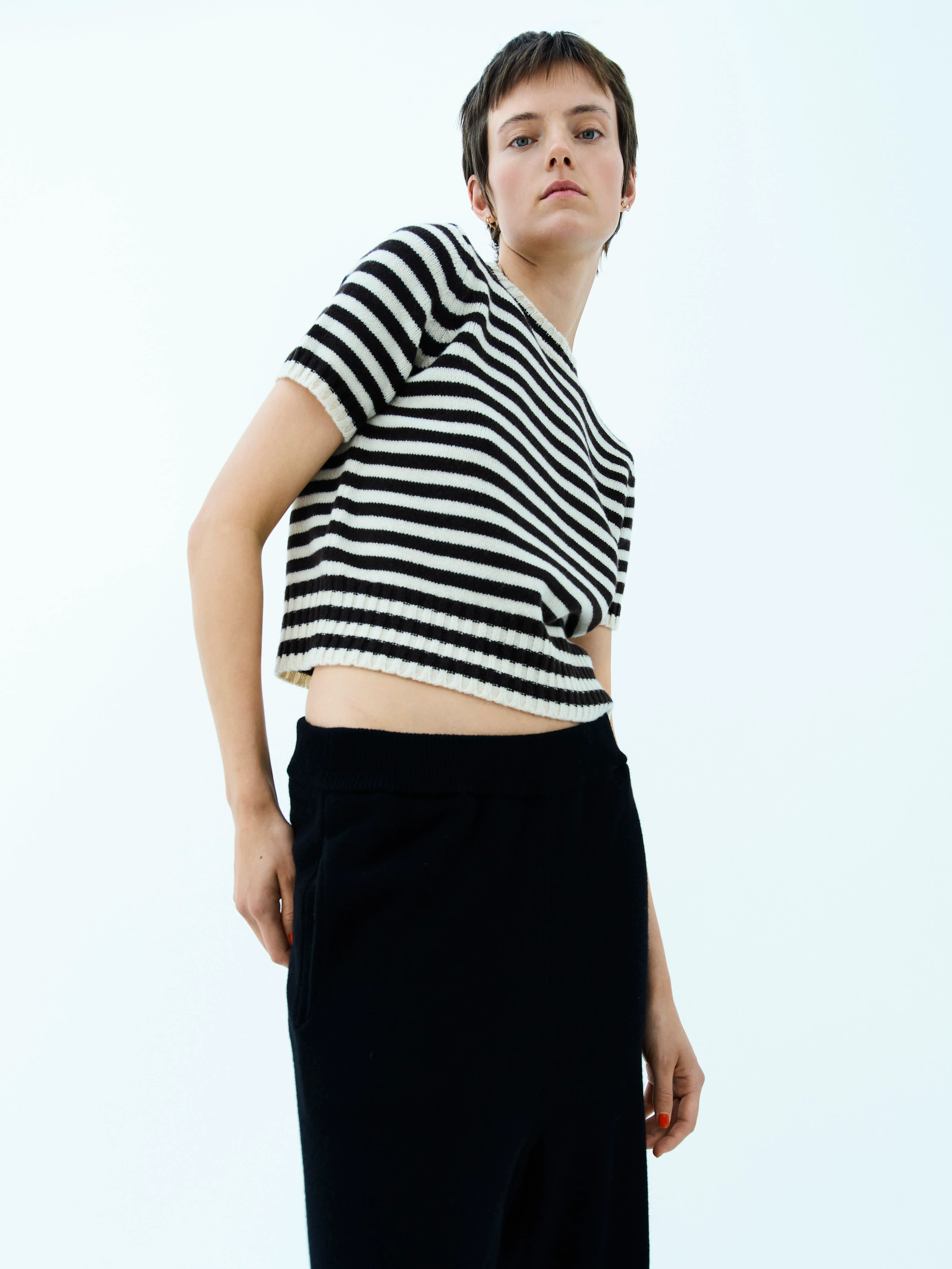 Short-sleeved cashmere wool mix jumper